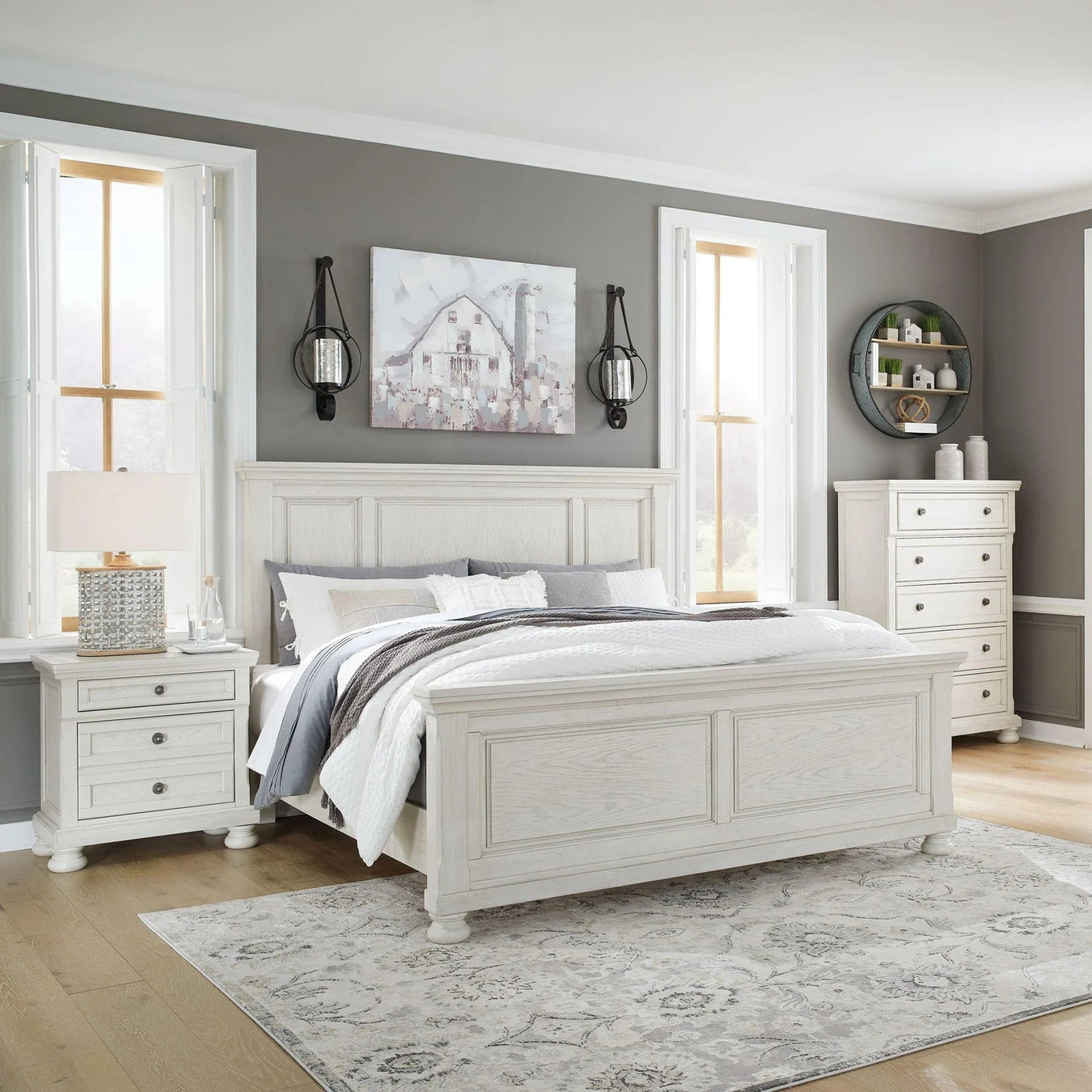 The Lyncott Bedroom Set in Brown by Signature Design by Ashley is a sophisticated choice for those seeking to enhance their contemporary or mid-century modern interiors. This bedroom set features a versatile medium brown wood-tone finish that exudes timeless elegance, making it a perfect fit for various decor styles. Crafted with a solid wood frame and complemented by a polyester-upholstered panel headboard and footboard, this set offers both durability and comfort. The Lyncott Collection stands out with its attention to detail, including round tapered legs and a seamless blend of hardwood solids, mango wood veneer, and MDF substrates.