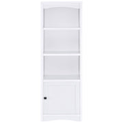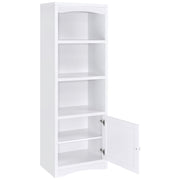 Put finishing touches on a charming media center in your living room with this tower bookcase. Perfect to flank your TV stand, it adds easy storage and display space. Its mix of cabinet and open shelving is versatile and stylish, with three shelves, two of them adjustable, on top of a one-door cabinet with one adjustable shelf. Trim details add subtle character and freshness to the overall look. A neutral finish complements surrounding decor and offers stylish appeal in your living room.