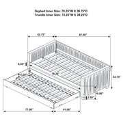 A gray fabric, pleated and overlapping along the surface of this twin daybed and trundle set, create a textured appearance against the clean straight lines. The narrow arms and backrest invite you to get creative with your own accent pillows and throws, opening this furniture piece up to becoming a lounge sofa or a bed for additional overnight guests. A trundle slips beneath the main frame when not in use or can be retrieved and glided out effortlessly. Black finish feet add slight elevation and a pop of contrast against flooring and rugs too. This twin daybed trundle set is the perfect addition for compact, multipurpose spaces like home offices and guestrooms. Key Features: • With its thin, pleated, fabric details, this shelter back daybed features exceptional tailoring throughout • Relax in comfort with this sleeping, lounging, daybed must-have • Perfect for smaller living areas, convenient pull out trundle for extra sleeping space when needed • Upholstered in grey fabric • Frame constructed with pine and MDF • Slat kits included