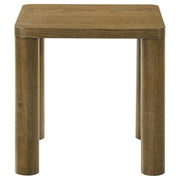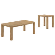 This coordinated table set unites organic warmth with geometric elegance. Rounded legs and gently curved corners bring softness to the structured forms, while the wood texture grounds the overall design. Whether used as a living room table set or occasional table pairing, the ensemble invites visual calm and versatility in one cohesive design statement. Key Features: • Occasional table set featuring both coffee table and end table designs • Brown oak finish offers an earthy look with visible wood grain detail • Rounded corners and cylindrical legs bring softness to the clean shape • Crafted from solid rubberwood, engineered wood, and white oak veneer • Tables provide functional surface space for living room needs • Cohesive set enhances modern styling with balanced proportion
