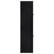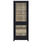 Elevate your space with a media tower that blends quiet elegance and thoughtful design. Wrapped in a bold black finish, this two-door cabinet reveals a rich interior contrast and graceful utility. Framed glass doors showcase your favorite pieces above, while a hidden drawer below offers a secret haven for everyday essentials. Whether you're curating a display or storing away the everyday, this tall, slender silhouette adds a refined presence to any corner it inhabits. Key Features: • Two-door media tower with black frame and warm wood-look interior finish • Upper cabinet includes two adjustable shelves for versatile display • Lower cabinet includes one drawer for concealed storage of small items • Clear framed glass doors enhance visibility while protecting contents • Gunmetal hardware adds subtle industrial contrast to the modern silhouette • Constructed from engineered wood, melamine veneer, and tempered glass for durability