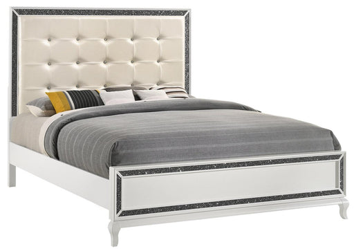 Valentino Collection by New Classic Furniture White finish Tufted upholstery on headboard LED lighting Mirror trim Embossed detailing on wood Turn...