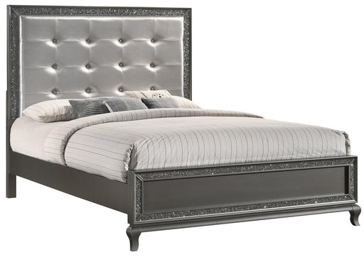Park Imperial Collection by New Classic Pewter finish Button-tufted details and crystal inlay trim adds a touch of distinction This bed requires a...