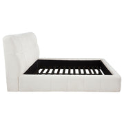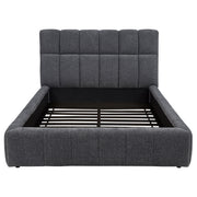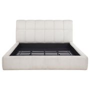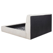 Tailored with bold lines and soft texture, this upholstered platform bed blends comfort with quiet strength. Vertical channel tufting runs along the headboard and foot rails, adding dimension and rhythm to the silhouette. Wrapped in plush fabric and fully slatted for support, it eliminates the need for a foundation. Crafted from solid and engineered wood, this bed invites modern serenity into any bedroom retreat. Key Features: • Queen platform bed with vertical tufting for subtle texture and visual rhythm • Cream fabric upholstery adds soft elegance with a light, airy modern palette • Slatted platform design supports mattress without needing a foundation • High headboard offers sculptural depth and a softly framed silhouette • Crafted from solid pine, engineered wood, and foam for strength and support • Perfect for minimalist or contemporary rooms with light, calming tones