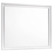 Transform your bedroom with the elegant design of this white set. The panel bed showcases metallic leatherette channel tufting framed by crisp molding and finished with turned feet for timeless charm. Coordinated storage brings added sparkle with glittery acrylic panels and faceted crystal hardware, blending modern radiance with classic details. Sculpted bun feet complete the look, while solid rubberwood, engineered wood, and okume veneer provide durability for lasting beauty and function._x005F_x000D_ Key Features: • Bedroom set in white finish combines timeless elegance with glamorous design • Panel bed features metallic leatherette channel tufting with molding details • Sparkling acrylic accents add radiance to the clean white storage surfaces • Crystal hardware enhances drawers with brilliant jewelry-like shine • Ample storage keeps clothing and essentials organized in style • Crafted with solid rubberwood, engineered wood, and okume veneer for quality