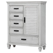 Exquisite detailing and versatile storage options make this wooden door chest a fashionable and functional choice. Inspired by island resort style, this chest pulls out all the stops to provide convenience storage space. A generous array of drawers and an expansive cabinet easily accommodate any wardrobe. Soft-closing drawers and door hinges offer smooth, easy use. Wire-brushed detailing in your choice of finishes adds rustic appeal to this gorgeous piece. Key Features: • Wooden door chest inspired by island resort style • Offers versatile storage options with a generous array of drawers and an expansive cabinet • Features soft-closing drawers and door hinges for smooth, easy use • Detailed with wire-brushed finishing for a rustic appeal • Available in various finishes to suit different decor styles