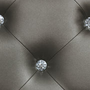 This glamorous contemporary bed features a variety of features that make it a must-have in any modern home. This exclusive Coaster design comes in a shimmering silver metallic finish that enlivens any space. The imposing headboard is upholstered with metallic leatherette that's fully tufted with crystal buttons. The headboard also includes white LED touch lighting so you can enjoy a vibrant ambiance. Solid block legs on the headboard and exquisite bun feet on the fret work detailed footboard come together to finalize the style of this fabulous bed. Key Features: • Panel bed with blue LED-lit headboard and tufted upholstered inset • Silver metallic finish accented with mirrored framing around headboard and footboard • Headboard features crystal-tufted metallic leatherette panel for a glam effect • Turned feet and solid block headboard posts offer balanced, elegant support • Requires foundation and is constructed with engineered wood and faux leather • Includes touch-activated lighting embedded in headboard for ambient effect