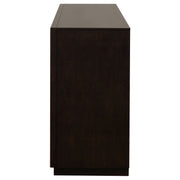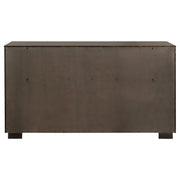 Embrace a retro feel in a modern bedroom with this stunning nine-drawer dresser. Elongated metallic drawer pulls protrude from flat drawer fronts, inspiring a sleek look. In a rich and warm smoke peppercorn finish, the deep hues and interesting silhouette create a bold visual. Its simple and smooth profile creates a structured aesthetic, complete with a smooth base that reaches toward the floor. Enhance with a chic perfume collection or a delightful sculptural piece. Key Features: • Nine-drawer dresser with a modern design and a retro feel • Features elongated metallic drawer pulls for a sleek look • Comes in a rich and warm smoke peppercorn finish that adds depth and interest • Boasts a simple and smooth profile for a structured aesthetic • Includes a smooth base that extends towards the floor, perfect for enhancing with decorative items