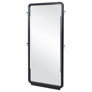 Bold in scale and softly contoured, this full-length floor mirror brings sculptural presence to any room. Framed in a deep burnished black finish with rounded corners, it offers a tall, uninterrupted reflection perfect for everyday use. Designed to lean securely against the wall, it also features integrated side hooks ideal for hanging garments, accessories, or daily essentials with subtle utility and style. Key Features: • Full-length floor mirror with burnished black frame and softly rounded corners • Lean-back design provides secure positioning against the wall without mounting • Tall reflective surface offers complete head-to-toe visibility • Integrated side hooks allow for hanging clothing, bags, or accessories • Sculptural shape and curved edges add subtle design character to any space • Crafted from Asian hardwood, engineered wood, and premium mirrored glass