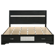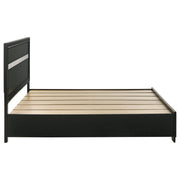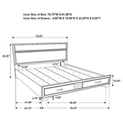 This alluring bed from the Miranda collection has both fashion and function. It features crisp lines and a headboard that's as simple as it is impressive. The footboard is built with two roomy drawers to hold extra sheets and blankets. The bed has an effortless timelessness and elegance. Add to the bedroom for a charming ambiance that's sure to please. Key Features: • Storage panel bed with integrated drawers in footboard design • Fully slatted platform eliminates need for separate foundation • Crystal-accent drawer pulls enhance the glamorous styling • Glitter trim accent at headboard and footboard adds visual interest • Bracket-style feet and beveled framing for a classic profile • Crafted with engineered wood in a bright white laminate finish