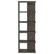 Add a touch of modern charm to any room with this stylish bookshelf in a weathered grey finish. Designed with a mix of open and backed shelving, it brings visual intrigue and versatility to your storage needs. Crafted from engineered wood and finished in eco-friendly melamine veneer, this unit offers five spacious tiers perfect for books, décor, and keepsakes in a contemporary home office or living space. Key Features: • Modern bookshelf with five staggered shelves for stylish organization • Weathered grey finish adds a rustic yet contemporary visual appeal • Open-end shelf design provides dimension and lightness to the silhouette • Ideal for displaying books, framed photos, or small potted plants • Made of engineered wood with a durable melamine veneer for longevity • Compact footprint suits apartments, home offices, or cozy reading corners