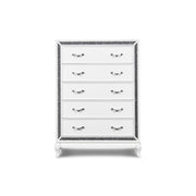 The Park Imperial Bedroom Collection offers a stylish and sophisticated look for your home. This collection includes a bed, nightstand, dresser, mirror, chest, and lingerie chest, all featuring a sleek pewter or white finish. The bed is upholstered in a luxurious blend of 80% faux leather and 20% cotton, adding a touch of comfort and elegance to your sleep space.The Park Imperial Bedroom Collection also boasts a number of practical , including full extension drawer glides, English/French dovetail drawers, and black felt top drawers. These make it easy to access and organize your belongings, while also protecting your clothes and other items from snags or damage.Overall, the Park Imperial Bedroom Collection is the perfect choice for anyone looking to add a touch of sophistication and practicality to their bedroom.