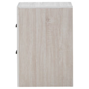 This two-drawer nightstand brings modern style and practical storage to the bedside. Its clean-lined frame complements contemporary spaces, while two spacious drawers provide room for nighttime essentials. Dark bronze handles contrast beautifully against the engineered wood construction and durable laminate veneer. Designed for everyday use, this nightstand offers both style and function in a compact footprint.