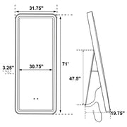 This standing full-length mirror combines elegance and functionality, featuring an LED-lit frame with three adjustable color options—warm yellow, neutral white, and cool blue. Perfect for getting ready in any lighting condition, this mirror includes an integrated Bluetooth speaker, adding a modern twist to your daily routine. Whether setting the ambiance with soft lighting or streaming your favorite music, this mirror elevates both your space and your experience.
