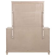 Breezy and balanced, this dresser and mirror set captures the warmth of coastal mornings and the elegance of timeless design. Framed with stepped trim and polished nickel ring pulls, the six-drawer dresser offers generous storage wrapped in washed oak serenity. Above, the mirror reflects light and openness, framed to echo the dresser’s graceful form. Crafted from poplar, oak veneer, and engineered wood, this set brings gentle refinement to the heart of the bedroom. Key Features: • Six-drawer dresser and mirror set with stepped trim and clean, symmetrical lines • Washed oak finish highlights wood grain with soft, sun-bleached character • Polished nickel ring pulls offer traditional elegance with subtle shimmer • Spacious drawers store clothing and essentials with everyday ease • Mirror reflects light and adds openness to any bedroom setting • Crafted from poplar, engineered wood, oak veneer, and mirrored glass for durability