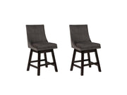 This striking barstool set invites you to take contemporary modern style for a spin. Comfortably cushioned seat, self-returning swivel and contoured back make it beautifully in tune with your needs. Luxurious woven upholstery is a sensational touch.