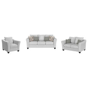 Timeless in design and rich in comfort, this sofa set unites coordinated silhouettes that balance form and function. Each piece features flared arms, foam cushions, and tailored upholstery that enhance a room’s sophistication while maintaining everyday comfort. Decorative accent pillows add texture and contrast, while the scaled design makes this set ideal for both cozy and contemporary living spaces._x005F_x000D_ Key Features: • Two-piece sofa set offers modern silhouettes with flared arm styling • Soft sand upholstery adds warmth and versatility to any living space • High-density foam cushions ensure long-lasting everyday comfort • Accent pillows provide subtle contrast and textural sophistication • Espresso legs deliver grounded balance and timeless visual appeal • Compact scale makes this coordinated set ideal for smaller spaces