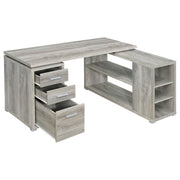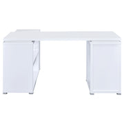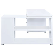 Bring organization and productivity into your workspace with this versatile L-shape office desk. Designed with an articulating return, it offers generous surface space for computers, books, and projects while keeping everything within reach. Two drawers and a built-in file cabinet provide secure storage for documents and supplies, while open shelving adds flexible display options. Crafted with engineered wood and laminate veneer, this sturdy desk blends durability with functional style for the modern office. Key Features: • L-shape office desk with articulating return in white finish • Two drawers and one file cabinet for efficient office storage • File cabinet holds both legal size and letter size documents • Open shelving offers easy access and versatile display options • Reversible configuration adapts to any office layout with ease • Engineered wood with laminate veneer ensures lasting durability