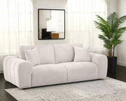 A bold statement in plush comfort, this sculptural sofa blends contemporary curves with relaxed charm. Chunky arms and a low profile enhance its casual elegance, while deep foam cushions and accent pillows offer cozy support. Wrapped in soft chenille upholstery over a sturdy blend of rubberwood and engineered wood, this lounge-ready piece is designed for everyday comfort. Ideal for living rooms, lounges, or open-concept interiors. Key Features: • Sofa features oversized arms and deep seats for sculptural, plush modern comfort • Burnt orange chenille fabric brings warm texture and cozy visual softness to the frame • Sculpted channel detailing along the arms enhances the bold contemporary silhouette • Two accent pillows provide added comfort and cohesive styling with the overall design • Frame includes rubberwood, plywood, and engineered wood for durable support • Thick foam cushions offer sink-in relaxation perfect for lounging or entertaining