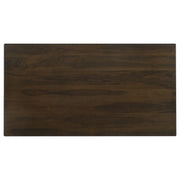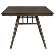 Perfect for your mid-century modern dining space, this beautiful and spacious dining table brings a retro expression. A spacious rectangular table top with a bullnose edge and a fluted apron beneath offers plenty of room for six family members and guests. Beneath the table are vintage-like tapered legs that flare outward in a bold, dramatic way. Throughout the entire table, a rich, dark walnut finish elevates it into an elegant and contemporary aesthetic. Place this wonderfully sleek and stylish dining table in both casual and formal dining rooms. Key Features: • Casual dining can look elegant and still be functional for busy homes • A spacious rectangular table top seats up to six comfortably • A dark walnut finish offers a rich color palette for refined tastes • The fluted apron brings out a hint of texture • Boldly flared tapered legs lend a vintage expression