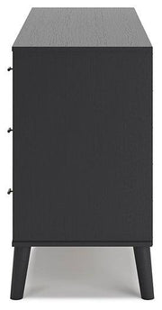 Put a retro spin on current trends with this dresser. Its mixed-material look of matte black and replicated beige cane brings a casually cool feel to your bedroom. Simple, sleek hardware and splay legs round out the urban meets mid-century vibe.
