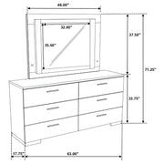 Upgrade your bedroom with this dresser and LED mirror set designed for modern living. The six-drawer dresser offers streamlined storage with a polished white high gloss finish and chrome-finished accents. Paired with a matching mirror featuring integrated perimeter LED lighting and a touch-activated switch, this set delivers both style and convenience. Smooth-gliding drawers complete the ensemble with everyday functionality. Key Features: • Dresser and LED mirror set showcasing sleek lines and contemporary design appeal • Dresser finished in bright white high gloss for a clean, polished, and modern look • Six spacious drawers provide generous storage with smooth metal extension glides • LED mirror features perimeter lighting and touch-activated switch for convenience • Chrome-finished metal handles and feet enhance the set’s refined, modern style • Crafted for durability with a cohesive design ideal for today’s stylish bedrooms