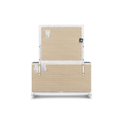 The Park Imperial Bedroom Collection offers a stylish and sophisticated look for your home. This collection includes a bed, nightstand, dresser, mirror, chest, and lingerie chest, all featuring a sleek pewter or white finish. The bed is upholstered in a luxurious blend of 80% faux leather and 20% cotton, adding a touch of comfort and elegance to your sleep space.The Park Imperial Bedroom Collection also boasts a number of practical , including full extension drawer glides, English/French dovetail drawers, and black felt top drawers. These make it easy to access and organize your belongings, while also protecting your clothes and other items from snags or damage.Overall, the Park Imperial Bedroom Collection is the perfect choice for anyone looking to add a touch of sophistication and practicality to their bedroom.
