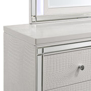 The Valentino bedroom collection is a stunning and elegant addition to any bedroom. The hardwood solids and veneers are finished with an embossed inlay and a beautiful silver, black, or white finish, adding a touch of glamour to the room. The collection includes a variety of pieces, all constructed with durability and functionality in mind. One of the standout of the Valentino collection is the inclusion of a lighted mirror and a lighted headboard. These provide a soft and ambient glow in the evening, creating a relaxing atmosphere in the bedroom. The MDF drawers feature English dovetail construction and full extension, providing ample storage space. The 80% PU/20% Cotton fabric adds a soft and comfortable touch to the collection, making it a pleasure to use every day.