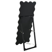 Introduce modern glam sophistication to your bedroom or living area with a contemporary LED floor mirror. It includes a frame that allows it to stand on its own, creating the option for placement anywhere in your space. The mirror boasts a dynamic frame design, with a wavy silhouette created with convex and concave curves that introduce a flowing, engaging ambiance. Mirror and diamond-like trim layers create sparkle and sophistication, perfect for a modern glam bedroom setting. The mirror includes an LED light, perfect for illuminating your daily wardrobe choices in a master suite.