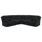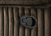 Unwind in sculpted comfort with this reclining sectional sofa, where bold texture meets irresistible softness. Wrapped in wide-wale corduroy upholstery, its velvety ribbed finish creates visual depth and an inviting touch. Deep channel tufting enhances the plush profile, while dual consoles offer lift-top storage and stainless steel cup holders. With pocket coil seating beneath every cushion, this sectional is a luxurious retreat for everyday lounging and connection. Key Features: • Reclining sectional sofa with sculpted profile and ribbed channel tufting throughout each panel • Chocolate brown wide-wale corduroy upholstery offers soft velvety texture and elevated visual interest • Two reclining seats provide effortless comfort with smooth manual motion functionality • Pocket coil seating ensures enduring structure, bounce, and all-day supportive comfort • Two center consoles with lift-top storage and removable stainless steel cup holders included • Reinforced with soft fabric, foam cushioning, and sturdy metal framework for lasting use