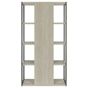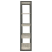 Bring open, modern style to your home office or living area with this tall contemporary bookshelf. Four spacious shelves in a soft whitewashed grey finish offer ample room for books, decorative pieces, and essentials. A sleek grey metal frame outlines the structure, lending industrial contrast to the wood tones. The flush bottom shelf enhances stability, while the engineered wood construction with a laminate veneer ensures long-lasting durability and easy maintenance for everyday use. Key Features: • Contemporary bookcase features four spacious open display shelves • Whitewashed grey engineered wood offers neutral, modern appeal • Dark grey finished frame provides clean contrast and support • Flush bottom shelf ensures floor-level stability and balance • Constructed with engineered wood and laminate veneer for longevity • Perfect for books, décor, or storage in home offices or living spaces