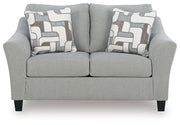 Subtle in color, big on style possibilities. This loveseat is a transitional take on everyday comfort. Its soft-to-the-touch upholstery keeps you cozy as you lounge, and the neutral hue is a perfect canvas for adding your own fashionable flair. Tidying up after kids or pets? It's easy to clean under and between the removable cushions.