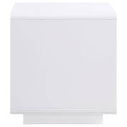 This matching end table continues the refined aesthetic with a white high gloss finish over engineered wood. Its compact form works perfectly as a side table or occasional table, while the open shelf adds convenient utility. As an accent table or utility table, it seamlessly aligns with the coffee table’s sleek presence, enhancing a cohesive, modern living room setting.