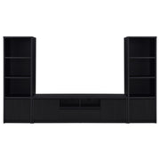 This contemporary media tower combines functionality and modern design in a sleek black finish. Built from durable engineered wood with a scratch-resistant laminate veneer, it features three open shelves for organizing media devices, books, or decor. A bottom cabinet offers concealed storage to keep clutter at bay. Its tall, clean-lined silhouette provides vertical storage, perfect for maximizing space in living rooms, home offices, or entertainment areas.
