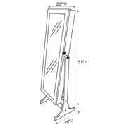This cheval mirror jewelry armoire blends full-length reflection with hidden storage, offering a functional dual-purpose design. The standing mirror opens to reveal an organized interior complete with hooks, trays, drawers, and shelves for rings, earrings, necklaces, and beauty essentials. A sturdy wood frame and adjustable tilt ensure versatile use, while its discreet profile makes it ideal for bedrooms, dressing areas, or walk-in closets seeking concealed storage and daily convenience. Key Features: • Standing mirror with hidden jewelry armoire for space-saving functionality • Full-length design provides head-to-toe reflection while getting ready • Interior includes hooks, shelves, drawers, and trays for organized storage • Secure magnetic latch keeps contents neatly enclosed when not in use • Durable frame construction with tilt adjustment for optimal viewing angle • Perfect for bedrooms, dressing rooms, or closet organization needs
