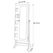 This cheval mirror jewelry armoire features a full-length mirror paired with a photo frame panel for personal touches. Behind the dual doors lies a spacious, velvet-lined interior with hooks, drawers, and compartments for organized jewelry and accessory storage. A built-in corkboard lets you pin notes or keepsakes, blending practicality with customization. Perfect for bedrooms or dressing areas, it offers secure, stylish storage with added memory display. Key Features: • Standing mirror armoire combines reflection, storage, and personal photo display • Dual doors include a full-length mirror and vertical photo slot panel • Interior offers drawers, hooks, ring rolls, and cubbies for jewelry and cosmetics • Built-in corkboard provides space for notes, pictures, or keepsakes • Lined interior protects jewelry and accessories from scratches and tangling • Great for bedrooms or closets needing functional and personalized storage