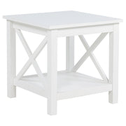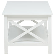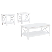 Blending clean lines with classic charm, this occasional table set offers timeless appeal with practical purpose. The lift-top coffee table features hidden storage and a rising surface for flexible use, while the matching end table provides open shelving and farmhouse-inspired X-frame sides. Finished in bright white and crafted from pine and engineered wood, this living room set brings fresh energy and functional design to everyday moments. Key Features: • Occasional table set with lift-top coffee table and matching X-frame side table • White finish provides a clean, versatile look for farmhouse or coastal themes • Lift-top coffee table reveals hidden storage for remotes, books, or blankets • End table includes an open shelf and square top for added display space • Crafted from solid pine and engineered wood for everyday durability • Perfect for casual living spaces seeking charm, utility, and coordinated design
