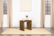 This rectangular end table pairs modern simplicity with rustic charm, featuring a robust U-shaped silhouette and clean lines. Crafted from sustainable solid sheesham wood, its layered auburn finish highlights the natural grain patterns, adding depth and character. The spacious top and solid sides with thick trim create a substantial, versatile piece. Made in India, this end table offers an ideal surface for refreshments or personal accents like a lamp or vase, blending functionality with artistry. Key Features: • Rectangular end table with a robust U-shaped modern design • Sustainable sheesham wood with layered finish for grain detail • Thick trim adds visual weight and sturdy construction • Spacious top ideal for refreshments or accent décor • India-made, blending simplicity with rustic charm • Natural wood finish enhances depth and organic appeal