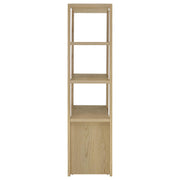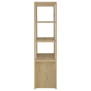 This tall media tower invites serene sophistication with its airy silhouette and thoughtful design. Three open shelves offer a stage for cherished décor, while two lower doors conceal an adjustable shelf for curated storage. A discreet cord cutout ensures seamless connectivity. Crafted from engineered wood with a scratch-resistant and eco-friendly laminate veneer, its light oak finish brings organic warmth to any living room, media center, or entertainment corner. Key Features: • Media tower with open design and closed cabinet in a serene light oak woodgrain finish • Light oak tone enhances the natural character with warmth and understated charm • Three wide shelves showcase books, keepsakes, or audio-visual essentials • Two doors reveal a spacious cabinet with one adjustable shelf for hidden storage • Rear cord cutout keeps electronics connected while maintaining a clean profile • Crafted from engineered wood with a durable, eco-friendly laminate veneer