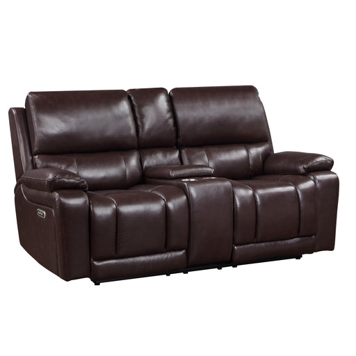 JOSHUA LEATHER CONSOLE LOVESEAT W/ PWR FR & HR-DK BROWN