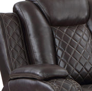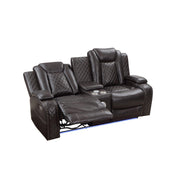 JOSHUA LEATHER CONSOLE LOVESEAT W/ PWR FR & HR-DK BROWN