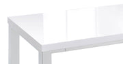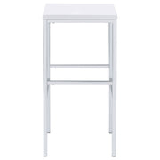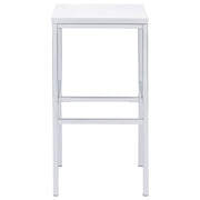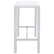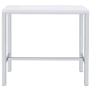 Ultra-modern with a clean lined silhouette, this five-piece bar set comes complete with a rectangular shaped bar table and four bar stools. Perfect for more contemporary home, the table comes with sleek and square legs made and a steel frame in an electroplated and polished chrome finish that lends a luxurious gleam to any room. The tabletop features a high gloss white lacquer finish and seats four people comfortable. Each stool also features a matching lustrous high gloss white seat and matching legs. One the stools are also footrests for extra support and stability. Key Features: • Contemporary five-piece pub height bar set • Set includes bar table and four (4) backless bar stools • Steel frame electroplated and polished in chrome • High gloss white lacquer finished tabletop and seats • Constructed with steel and MDF