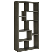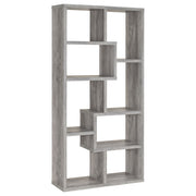 With seven convenient shelves, this bookcase is perfect for keeping your reading materials in one place. Sturdy and durable, it's expertly crafted from MDF, particle board, and engineered veneer. Its striking silhouette is bold, yet refined with geometric shapes of various sizes. It's available in your choice of four stunning finishes to match your decor. Whether it's placed in a home office, living room, or bedroom, this bookcase is an exquisite enhancement to any home.