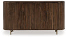 Function and style merge perfectly with this accent cabinet. Exquisitely crafted with mango wood, it makes a great case for refined contemporary design. Adding to its allure, the fluted door fronts and gracefully curved side detail keep the look cool with a mid-century vibe. The doors open to reveal interior shelves, ideal for hiding clutter or whatever you choose in fine fashion.