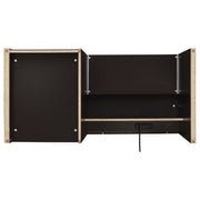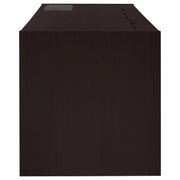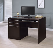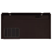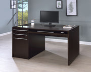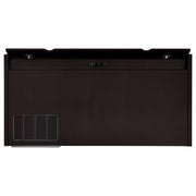 A modular design scheme adds function and personality to a modern task space. This connect-it computer desk conquers basic operations and lends a stylish contemporary look. Finished in bold cappuccino, its linear silver hardware pulls offer a cool touch. Find storage space in three side drawers with Euro glides and a center keyboard drawer that makes computing a snap. Spruce up a compact contemporary office or home space with this exceptional desk. Key Features: • Connect-It office desk in cappuccino finish • Lift-top cord management compartment, a keyboard tray, two (2) storage drawers, and one (1) file cabinet are features of this desk • Clear tempered glass insert on desk offers clear view of devices • Lift-top storage contains power outlet (4AC) • MDF, particle board, and laminate construction
