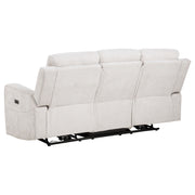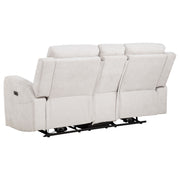 Wrap yourself in the comfort of this chenille power reclining sofa set, where modern design meets everyday luxury. Smooth push-button recliners offer effortless motion, while plush cushioning and padded headrests enhance relaxation. The loveseat includes a center console with lift-top storage and removable stainless steel cup holders. Soft chenille upholstery and a sturdy metal frame complete this inviting ensemble. Key Features: • Power reclining seats operate with smooth push-button control for personalized comfort • Ivory chenille upholstery features a soft texture with a refined woven appearance • Plush cushioning and padded headrests support extended periods of relaxation • Loveseat includes a center console with lift-top storage for added functionality • Two removable stainless steel cup holders offer clean and convenient drink access • Durable metal framing provides lasting strength and daily structural support