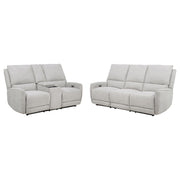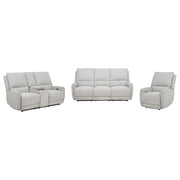 Designed for those who seek comfort without compromise, this power reclining sofa set transforms any space into a soothing sanctuary. Draped in dove grey chenille, each piece features sculpted seating, generously padded cushions, and smooth power-operated recline at the touch of a button. Built-in anti-pinch safety mechanisms pause movement upon contact, offering both luxury and protection. It's a collection that brings ease, elegance, and confidence to every seat. Key Features: • Power reclining sofa set with plush cushions and sculpted seats for cozy modern lounging • Dove grey chenille upholstery provides soft texture and a clean neutral appearance • Each seat features push-button recline for smooth, effortless comfort adjustment • Supportive backrests and foam padding ensure full-body relaxation in every position • Anti-pinch safety function stops motion if resistance is detected mid-recline • Built from pine, plywood, and metal to deliver long-lasting strength across the set