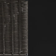 Place this transitional dining chair in a space for a hint of texture. Designed with a brown handwoven faux rattan across the seat, this charming chair offers a natural, boho-inspired vibe. Mounted on a black metal frame that offers all the support one needs, this lovely dining chair also offers vintage vibes with a flared base that lends an open, airy look. The sandy black slim frame also creates bold lines. Place this rattan-wrapped dining chair at a mid-century style dining table or allow it to grace a home office for extra guest seating. Key Features: • Transitional dining chair with a boho-inspired design • Features a brown handwoven faux rattan seat for a natural texture • Mounted on a sturdy black metal frame for ample support • Offers vintage vibes with a flared base for an open, airy look • Versatile use, perfect for a mid-century style dining table or as extra seating in a home office