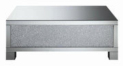 This 48-inch rectangular mirrored coffee table is the perfect centerpiece for a glam living room. Designed with an engineered wood frame, it features fully mirrored surfaces that reflect light beautifully, while acrylic crystal accents provide dazzling sparkle. Its clean-lined, modern silhouette blends function with glamorous sophistication, ideal for hosting or showcasing decor.