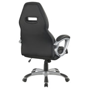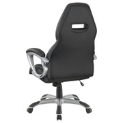 A modern office enjoys a light, airy uplift with this office chair. Contemporary design elements fashion a sleek, sophisticated look. Upholstered in white leatherette, it offers easy care and an energetic attitude. Enjoy ergonomic comfort with a large headrest, contoured back, arm rests, and a slender molded seat. Adjustable height settings provide tailored positions, and a caster wheel base ensures smooth portability. Key Features: • Contemporary design elements fashion a sleek, sophisticated look upholstered in white leatherette for easy care and an energetic attitude • Ergonomic comfort with a large headrest, contoured back, arm rests, and a slender molded seat • Adjustable height settings provide tailored positions • Caster wheel base ensures smooth portability • Light, airy uplift with this office chair